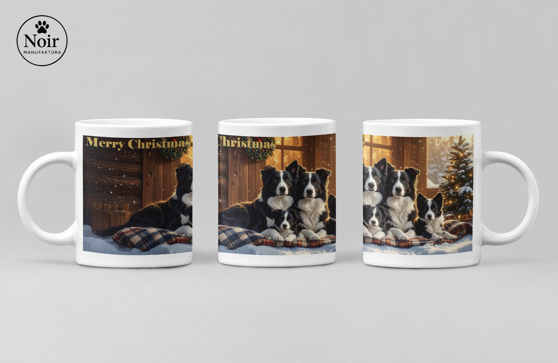 Border Collie " családi karácsonya" prémium bögre – 330 ml