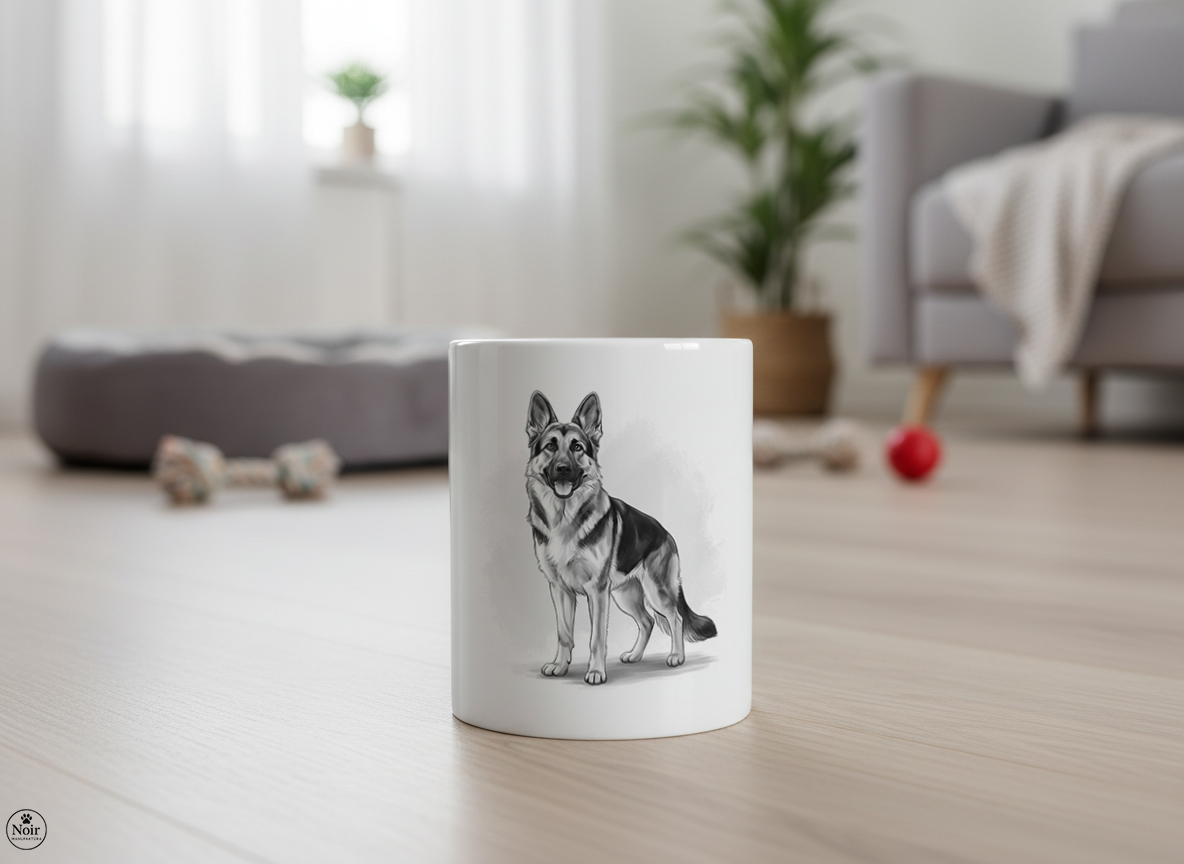 Ez a prémium minőségű németjuhászos bögre igazi különlegesség! A bögrén részletgazdag németjuhász illusztráció látható, amely egyedi és barátságos megjelenést kölcsönöz. Tökéletes választás mindennapi használatra, otthonra vagy irodába, valamint kiváló ajándék németjuhász tartóknak és kutyakedvelőknek.