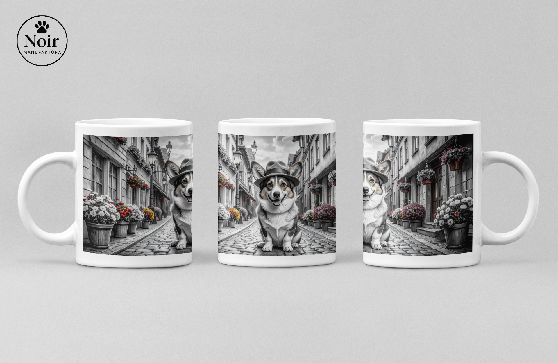 Ez a prémium minőségű bögre igazi különlegesség! A bögrén részletgazdag corgi illusztráció látható egy hangulatos városi háttérrel, ami egyedi és barátságos megjelenést ad.