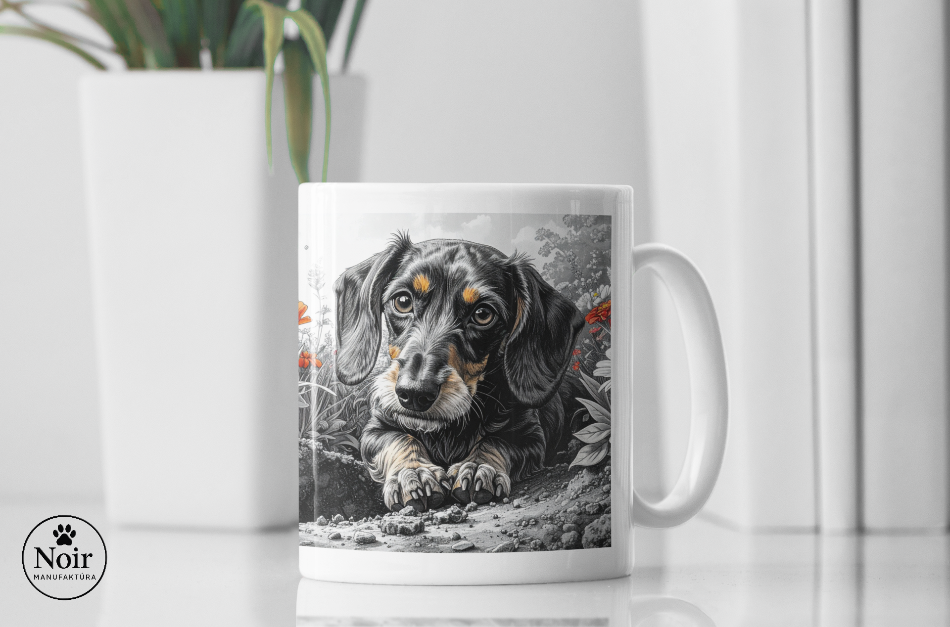 Tacskó "drótszőrű a gödör mellett" prémium bögre – 330 ml