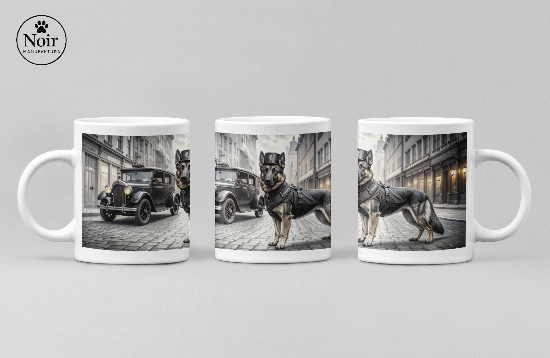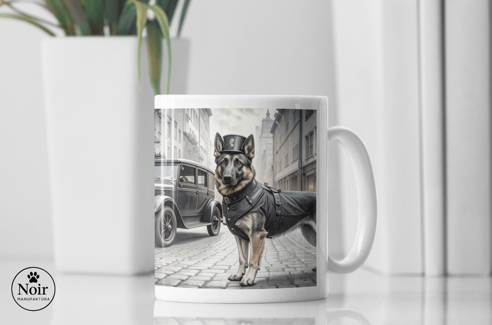 Ez a prémium minőségű bögre igazi különlegesség! A bögrén részletgazdag rendőr németjuhász illusztráció látható egy 1920-30-as évek európai utca háttérrel, ami egyedi és barátságos megjelenést ad.