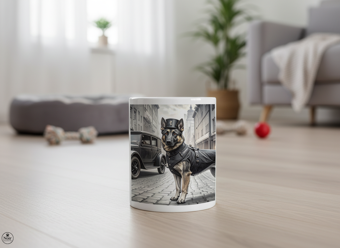 Ez a prémium minőségű németjuhászos bögre igazi különlegesség! A bögrén részletgazdag németjuhász illusztráció látható egy 1920-30-as évek európai utca háttérrel, amely egyedi és barátságos megjelenést kölcsönöz. Tökéletes választás mindennapi használatra, otthonra vagy irodába, valamint kiváló ajándék németjuhász tartóknak és kutyakedvelőknek.