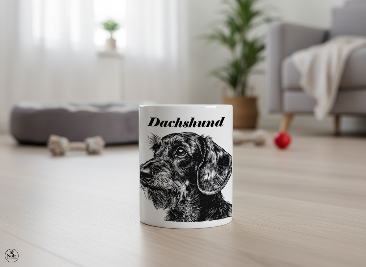 Ez a prémium minőségű tacskós bögre igazi különlegesség! A bögrén részletgazdag tacskó illusztráció, amely egyedi és barátságos megjelenést kölcsönöz. Tökéletes választás mindennapi használatra, otthonra vagy irodába, valamint kiváló ajándék tacskótartóknak és kutyakedvelőknek.