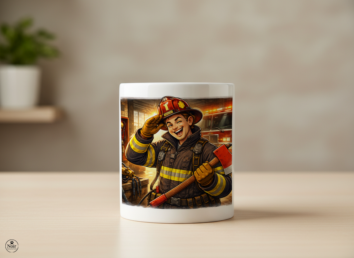 Ezen a prémium minőségű bögrén egy részletgazdag, igényes tűzoltó illusztráció látható, amely modern és időtálló megjelenést kölcsönöz a terméknek.