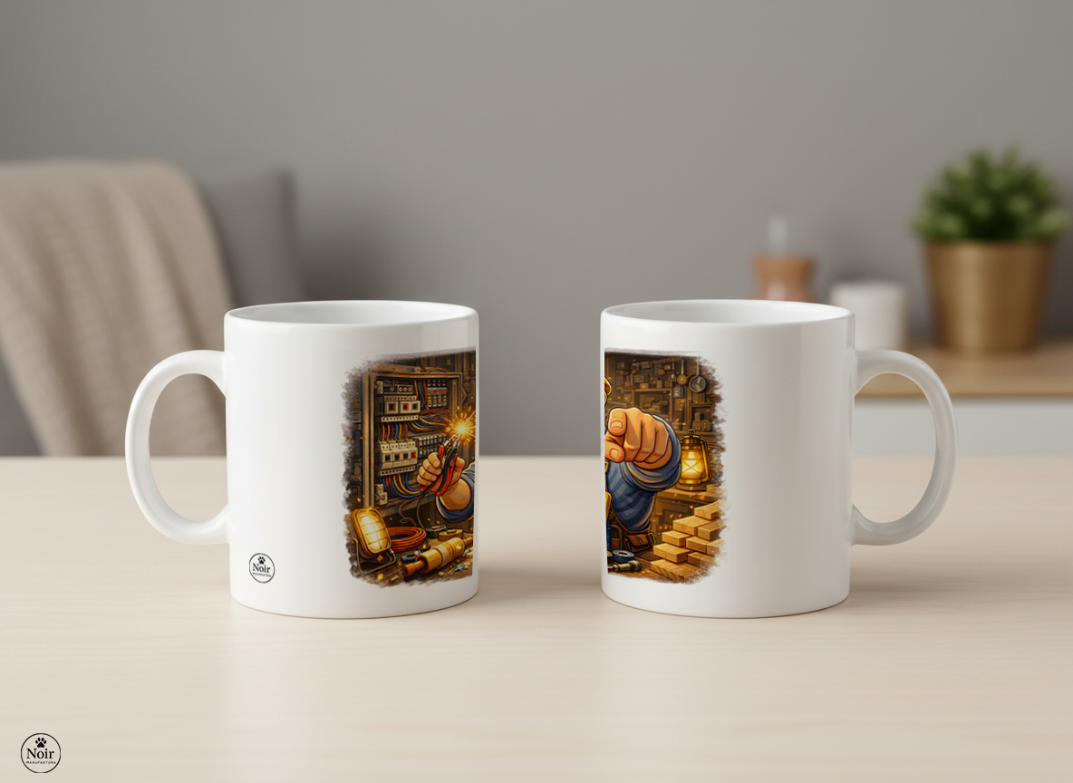 Ezen a prémium minőségű bögrén egy részletgazdag, igényes villanyszerelő illusztráció látható, amely modern és időtálló megjelenést kölcsönöz a terméknek.